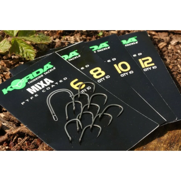 De Mixa Hook van Korda is de eerste haak die speciaal ontwikkeld is voor het oppervlakte vissen. Geschikt om zelfs de meest voorzichtige karper te kunnen haken. Dankzij de korte steel, wijde bocht en de op 5 graden staande offset haakpunt is deze haak `Made For The Jobยด. Wat echter nog belangrijker is, is de scherpte van de punt. Die is chirurgisch scherp, en daardoor zeer snel prikkend. Afgewerkt met een kwalitatieve PFTE coating